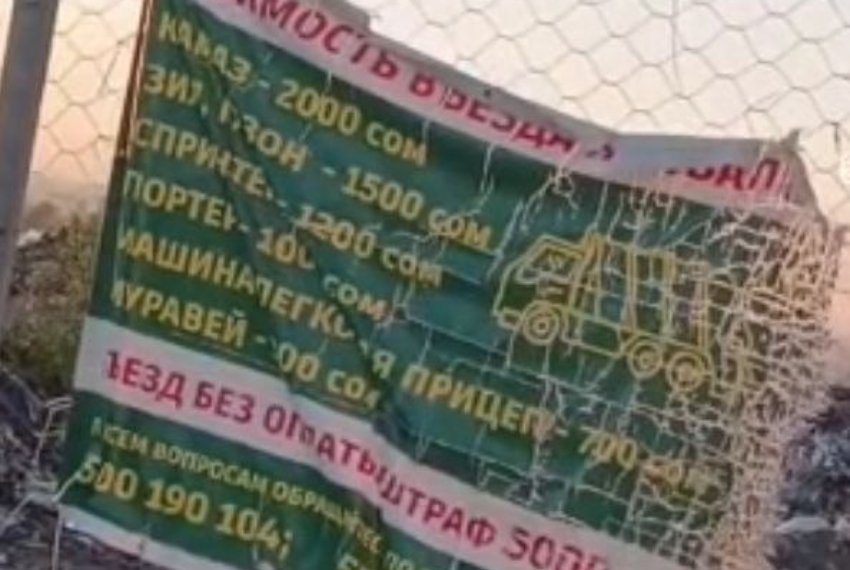 По их словам, ежедневно на территорию полигона заезжают десятки грузовых и легковых автомобилей, но система оплаты вызывает вопросы. Граждане утверждают, что за вывоз бытового мусора с них требуют до 700 сомов, при этом деньги необходимо переводить на электронный кошелек по номеру телефона, указанному на месте.