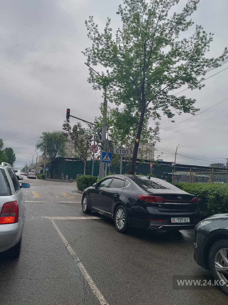 Хозяин этой машины нашел хорошее место для парковки — прямо на перекрестке улиц Ибраимова и Киевской, заехав за стоп-линию.