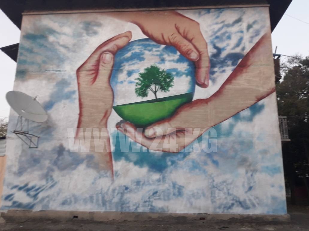 В Караколе на фасадах многоэтажек появились граффити. Фото прислал ИА «24.kg» местный житель Ислам Болпонов.