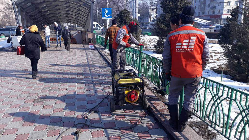 Ограждение напротив мэрии Бишкека сотрудники МП «Тазалык» восстановили. Об этом сообщили ИА «24.kg» в пресс-службе муниципалитета.