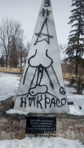 В Караколе вандалы испортили неприличными рисунками монумент героям, погибшим в баткенских событиях. Об этом ИА «24.kg» сообщили читатели.