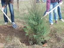 - Здесь высаживаем 50 саженцев можжевельника, - отвечает юная дама. Она деловито наблюдает за работой своих соратников и нередко личным примером показывает, как правильно прикапывать деревца.