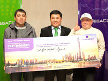 Согласно условиям акции «Mega Клуб», для лучших продавцов торговых точек, брендированных салонов и MegaCom экспресс-центров (МЭЦ) были преподнесены бонусы, среди которых фирменная сувенирная продукция, а главный приз - сертификат на получение туристической путевки в Объединенные Арабские Эмираты. Лучшим дилерам сотовой компании дополнительно вручается и мотивационный сертификат «Активный продавец 2012 года».
