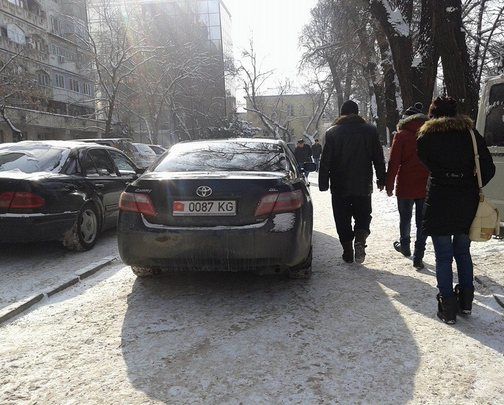 Сегодня в соцсетях опубликовано фото служебной машины депутата с госномером 0087KG. Автор фотографии поясняет, что припаркованная на тротуаре и преградившая прохожим путь депутатская машина замечена в 12.00 в столице на пересечении проспекта Манаса и улицы Московской.