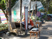 Увидев издалека людей в штатском и журналистов, к нам поспешил подойти представитель местного айыл окмоту. Чиновник поведал, что лет пять назад по просьбе местных крестьян выделен участок на краю дороги для торговли овощами и фруктами. «Вначале было 2-3 человека, а сегодня уже целый рынок. Мы ничего не можем с этим поделать», - посетовал староста села. Чем их больше, тем больше поступлений в виде оплаты за место торговли. Но куда идут эти средства, для всех осталось тайной.