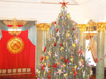 У театра оперы и балета суета, ждут прибытия президента на ежегодную новогоднюю елку. Как заявлено, на представление приглашены 800 детей из числа отличников учебы, воспитанников детских домов и школ-интернатов, а также малообеспеченных семей со всей республики. 400 ребятишек приедут из регионов. Каждому ребенку по традиции будет вручен набор сладостей и памятный подарок.