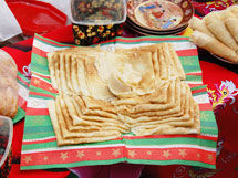 Накрытые столы, символизирующие торговые ряды, ломятся от всевозможных яств, главным из которых, конечно же, являются блины. Каких только начинок тут не встретишь. Родители подготовили варенье из разных ягод, икру красную, черную и даже заморскую.