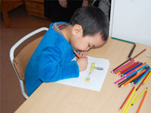 В третьем здании живут младшие дети в возрасте от 3 до 6 лет. При виде гостей они весело рассказывают стихи, поют и танцуют. Дети просят журналистов показать снимки в фотоаппарате, поясняют, что плакаты, которые висят на стене, они делали сами, конечно, не без помощи воспитателя Бурул эже. Только один мальчик сидит в сторонке. Оказалось, что он здесь всего второй день и пока боится общаться с посторонними.