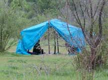 Подъезжаем к участку недалеко от VIP-городка. Стоят палатки, молодые люди разлеглись на травке, дожидаются своего звездного часа. Городские власти попытались помешать проезду машин, вырыв канаву. Однако для земельных мародеров и это не стало препятствием. Засыпав яму гравием, они проехали на облюбованный участок.