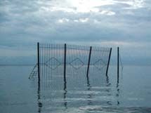 Расстроенный падением нравов, пошел бродить по округе. В соседнем пансионате только за вход надо отдать 250 сомов. Стороной, вроде, не пройти - стоит высокий забор. И даже на воде поставили решетку. Правда, настойчивые граждане ее поломали и теперь беспрепятственно ходят в дорогой пансионат на экскурсию. Контраст с соседями здесь очевиден: просеянный песок, открытый бассейн, ухоженные клумбы, здания, построенные в европейском стиле. Получаешь глубокое эстетическое удовольствие от созерцания здешних красот и красоток, гуляющих по аллеям. Развлечений масса - прокат акваланга, катание на яхте, занятия йогой у самой воды... И шезлонги с грибками здесь бесплатные. Вот что значит с умом подходить к организации досуга отдыхающих! Важен лишь объем вашего портмоне.