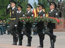 На площади Победы утро 5 мая было необычайно торжественным. Выстроенные по струнке военнослужащие различных подразделений, огромное количество цветов, присутствие послов СНГ и ветеранов-пограничников - все говорило о том, что здесь в ближайшие минуты произойдет значимое событие. Прохожие подозревали, что это очередная репетиция мероприятий к Дню Победы.