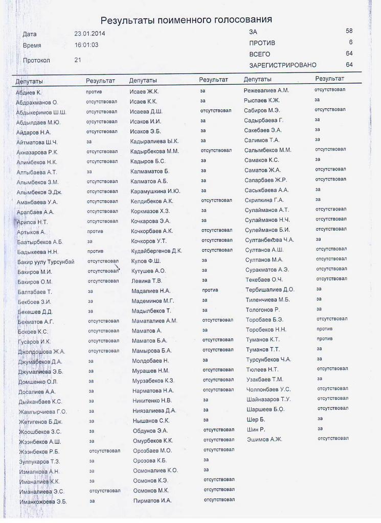 Депутаты вопреки регламенту Жогорку Кенеша 6 раз пытались проголосовать за документ, но не могли. Седьмая попытка закончилась в пользу поправок.