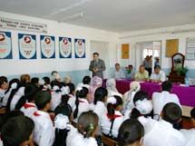 В большом актовом зале собрались учащиеся 9-11-х классов и около 30 учителей, которые в течение часа беседовали с Омурбеком Текебаевым.