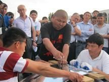 - Это раньше Ташчайнар двигал при помощи зубов воздушные суда и автомобили, - напомнил президент Фонда развития и сотрудничества Максат Чакиев, помогающий богатырю. - Сегодня он исполнит несколько новых трюков. Забьет зубами и головой гвозди в доску, причем, сквозь железо! Разгрызет жесть. А в конце протянет колонну автомобилей, прицепленных к коже его локтей! Результаты будем фиксировать, чтобы потом передать в Книгу рекордов Гиннеса.