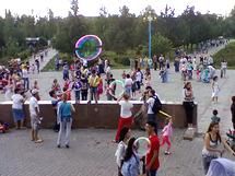 «Смотрите, все улыбаются», - обратила внимание подруг девочка-подросток. И, правда, всюду улыбки и детский смех. Пожалуй, для малышей получился настоящий праздник, где можно было, не боясь упреков взрослых, визжать от переполнявших эмоций и гоняться за мыльными пузырями.