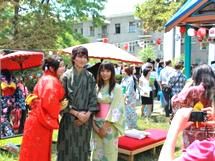 До официального открытия фестиваля в небольшом парке перед зданием центра в тени деревьев гостей ждали разнообразные развлечения, знакомящие гостей с японским искусством, культурой и традициями. Глаза разбегались, и голова шла кругом от невозможности решить, куда шагнуть в первую очередь. Помимо участия в традиционных для подобных акций оригами (искусство складывания различных фигурок из бумаги), чайной церемонии, пробы японских блюд, испытания себя в искусстве каллиграфии, викторинах и детских играх, была еще возможность, например, примерить юкату (кимоно без подкладки). В эту примерочную выстроилась немалая очередь. Вызвали улыбку представители мужского пола, которые так же, как и дамы, терпеливо дожидались очереди, с любопытством надевали традиционную японскую одежду, а затем с нескрываемым удовольствием поглядывали на себя с разных сторон в зеркало, позировали и фотографировались...