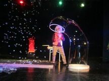 В театр ребятишки-дошколята пришли, как и полагается, со старшими родственниками. В ожидании необычайного шоу они нетерпеливо ерзали на своих местах. Но, как только в зале погас свет, все замерли. И было отчего: сверху полились разноцветные световые потоки, мягкий дым окутал зрителей, зазвучала музыка, и на сцене появился клоун с чуть грустной улыбкой. Ловкими кошачьими движениями он стал творить чудеса, выдувая мыльные пузыри разнообразнейших размеров. Все действо сопровождают стихи в исполнении автора - Александра Балбекина. Его мягкий бархатный голос словно завораживает зрителей и зовет их в Страну грез, волшебства и радости.