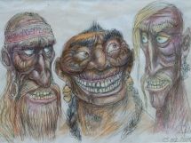Разглядывая кропотливо и тщательно прорисованные Джумом образы, восхищаюсь его талантом и усердием и спрашиваю, когда созданы работы, представленные на выставке. «Есть рисунки, сделанные в далеком 2004-м, есть и совсем недавние», - отвечает он.