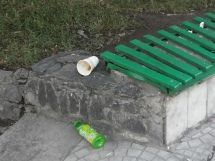 Уселась, где почище. Тенек, свежо, хорошо. Смотрю по сторонам: деревья, фонтаны, влюбленные парочки. Взглянула на землю, а там пустые бутылки, пластиковые стаканчики, окурки. Причем видно, что дворники до сквера не доходили уже давно. Если и убирали территорию, то только бутылки и пакеты, в траве же остались горы окурков.