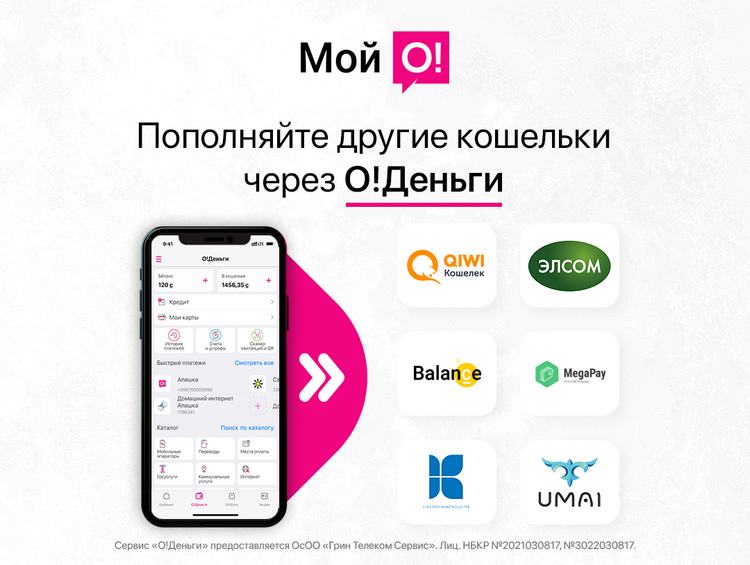 Сервис «О!Деньги» предоставляется ОсОО «Грин Телеком Сервис». Лиц. НБ КР № 2021030817, № 3022030817.