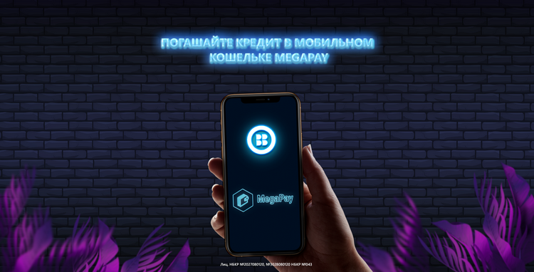 Для того чтобы воспользоваться услугами, вам необходимо пополнить мобильный кошелек MegaPay в терминале, затем зайти в приложение в раздел «Оплата услуг». Далее найти раздел «Банковские услуги» и выбрать необходимую опцию.