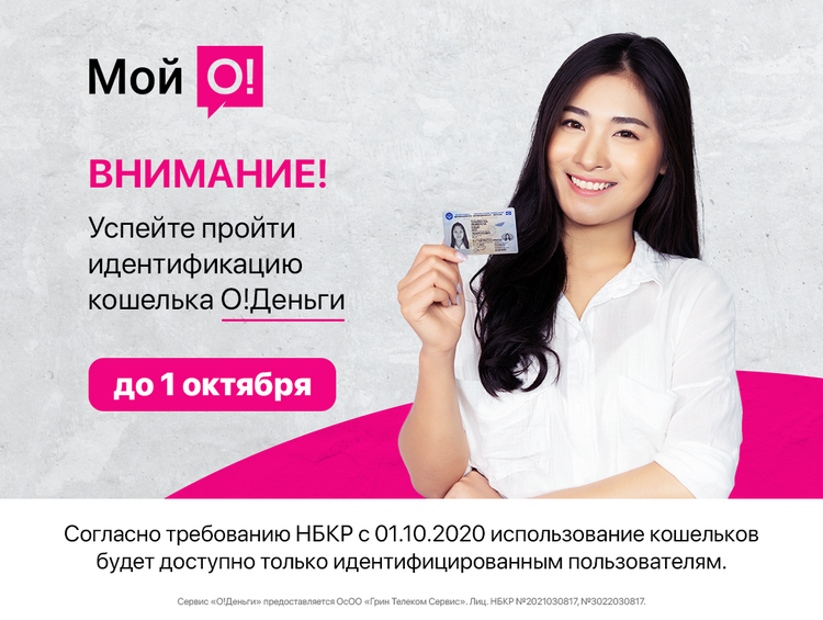 Сервис «О!Деньги» предоставляется ОсОО «Грин Телеком Сервис» в рамках доступного перечня услуг. Лицензии НБ КР № 2021030817, № 3022030817.