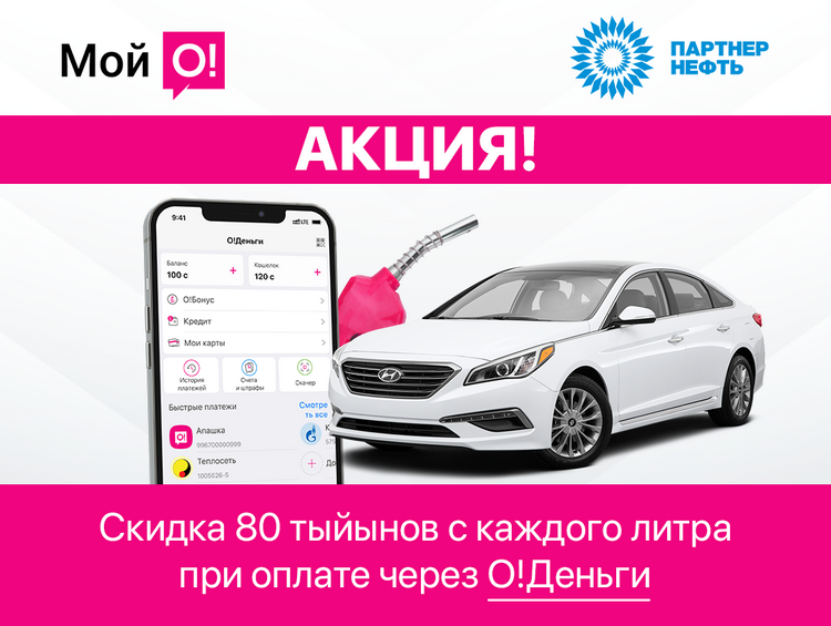 В сети АЗС «Партнер Нефть» при оплате через кошелек «О!Деньги» теперь действует скидка 80 тыйынов с каждого литра бензина!