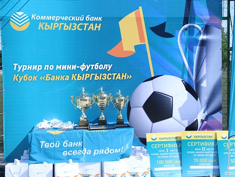 Завершился первый турнир по мини-футболу среди корпоративных клиентов ОАО «Коммерческий банк КЫРГЫЗСТАН», он охватил 37 компаний-клиентов банка из Ошской, Иссык-Кульской областей и Бишкека. Отличительной чертой турнира стала удивительная атмосфера спортивного праздника, неповторимый азарт и восторг соревнования, который ощущали футболисты. Положительный эмоциональный настрой буквально витал в воздухе.