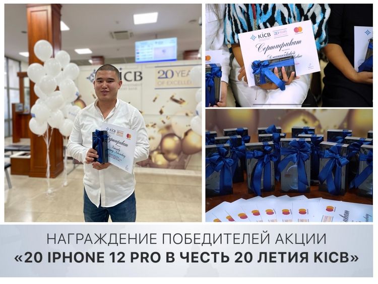 В сентябре 2021 года в головном офисе KICB прошло торжественное награждение победителей в рамках акции, которая была приурочена к 20-летию KICB — 20 участников получили iPhone 12 PRO! Акция состоялась при поддержке платежной системы Mastercard.