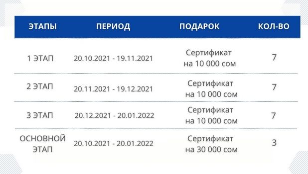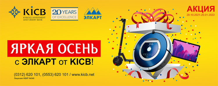 «Яркая осень с ЭЛКАРТ от KICB!» — в рамках акции разыгрываются сертификаты на приобретение техники на общую сумму 300 тысяч сомов!
