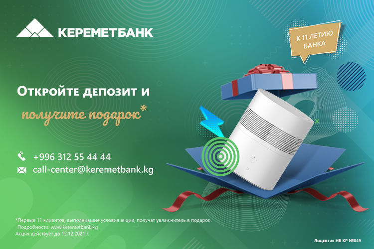 В честь своего 11-летия «Керемет Банк» рад объявить о праздничной акции для своих клиентов «Откройте депозит — и получите подарок»!