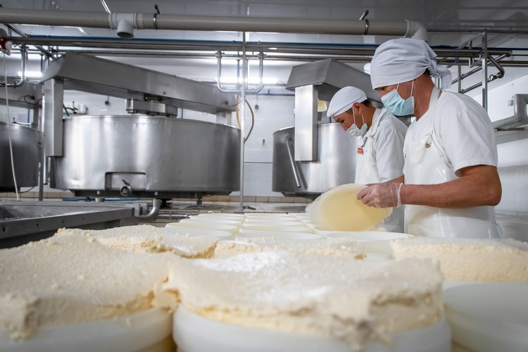 Молоко определенной жирности, которое прошло многоступенчатую процедуру проверки, идет на производство сыров. Оно должно пройти все стадии производства от пастеризации, закваски, свертывания, посола и созревания.