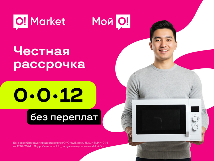 Рассрочка доступна на O!Market через суперапп «Мой О!» — выбирайте смартфоны, бытовую технику и другие товары с удобной оплатой.
