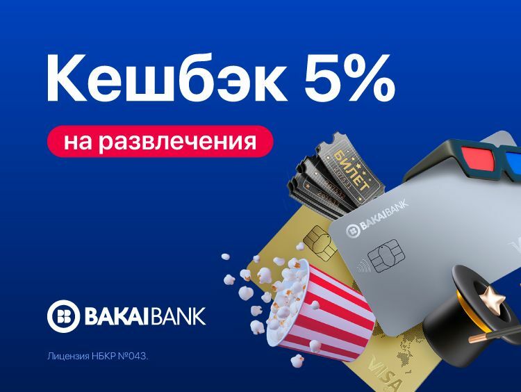 Весь май в Bakai Bank действует акция с повышенным кешбэком для держателей карт Visa. Банк предлагает вернуть до 5 процентов от суммы покупок в категориях, связанных с отдыхом и развлечениями.