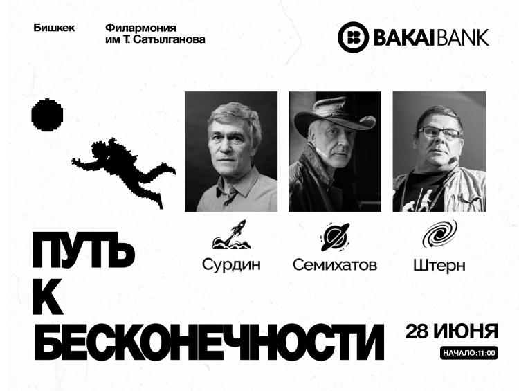 28 июня 2025 года в Бишкеке состоится уникальное научно-просветительское событие — форум «Путь к бесконечности», посвященный астрономии, астрофизике и будущему космонавтики. Мероприятие пройдет в Государственной филармонии имени Токтогула Сатылганова при поддержке Bakai Bank, выступающего партнером инициатив, продвигающих науку и знания в Кыргызстане.