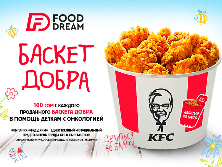 Компания Food Dream, официальный и единственный представитель KFC в Кыргызстане, активно реализует социальные инициативы в сферах здравоохранения спорта. Это не первый проект компании, направленный на поддержку общества и, как обещают организаторы, точно не последний.