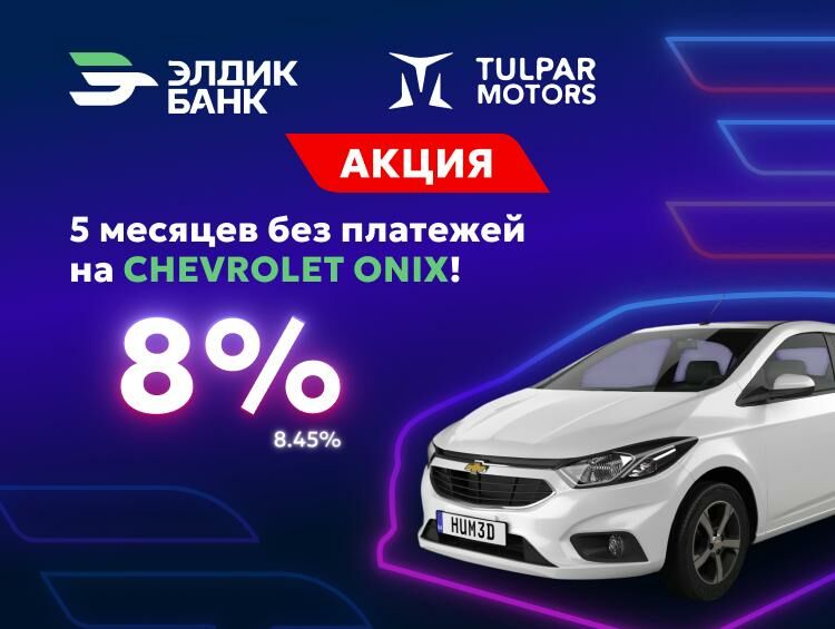 ОАО «Элдик Банк» и TULPAR Motors объявляют о старте совместной акции «5 месяцев без платежей на Chevrolet Onix» в рамках программы «Льготное финансирование автокредита-2».