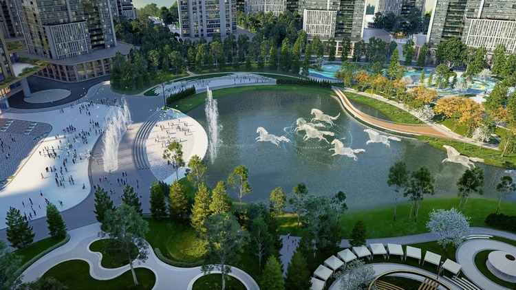 Фото компании. Визуализация площади и парка с озером в Royal Central Park