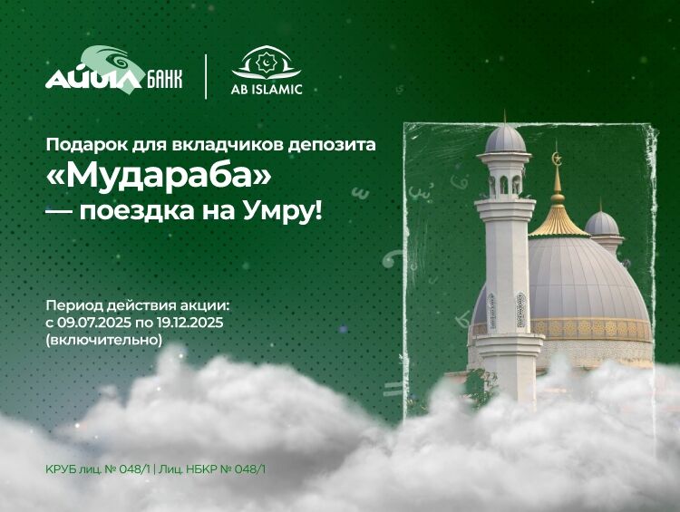 «Айыл Банк», стремясь поддержать духовные потребности своих клиентов и продвигать депозит «Мудараба», основанный на принципах исламского финансирования, предлагает уникальную возможность.