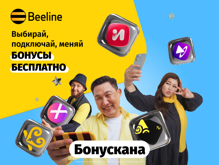 Бонусы доступны в тарифах линейки «Это», «Безлимит месяц» и «Безлимит неделя». Обязательно загляните в Бонускану в приложении «Мой Beeline» — там собраны все бонусы, чтобы вы могли легко выбрать самые нужные, интересные и полезные. При желании их можно запросто поменять: новые бонусы начнут действовать сразу после обновления пакетов по тарифу.