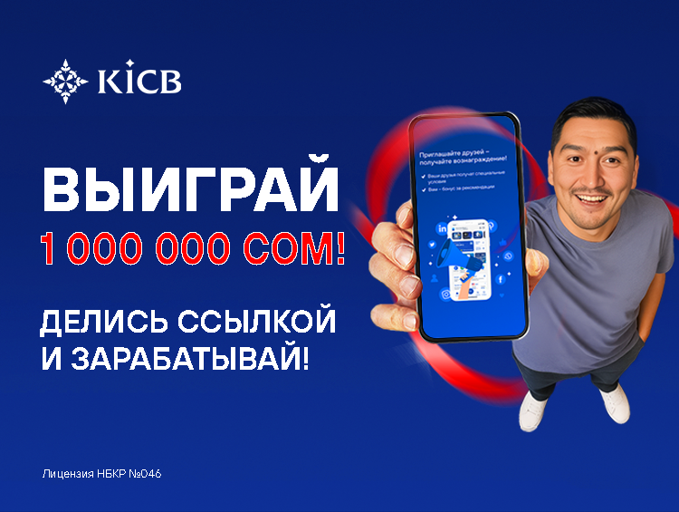 KICB объявляет о начале акции «Ссылка на успех». И каждый кыргызстанец, скачавший или пользующийся мобильным приложением KICB, становится претендентом на получение приза в 1 миллион сомов!