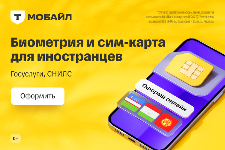 ООО «Т-Моб». Услуги по биометрии и оформлению документов оказываются АО «Т-Банк». Подробнее: mobile.tbank.ru. Реклама. 0+.