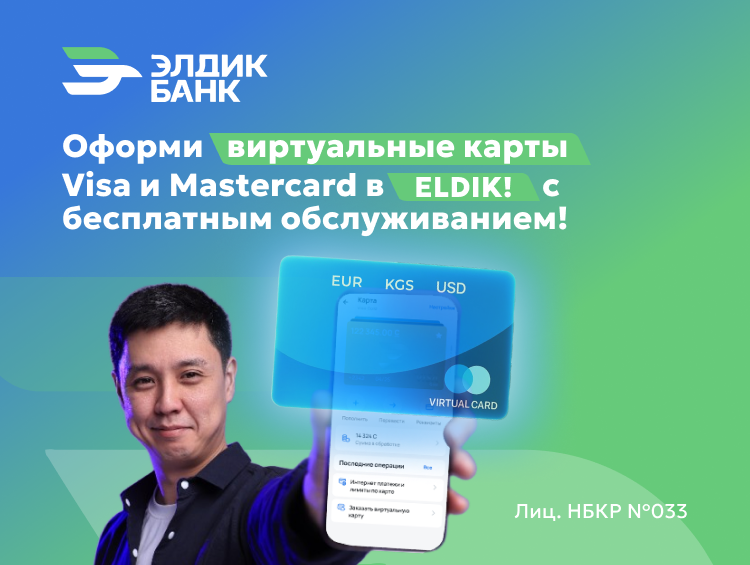 Виртуальные карты Visa и MasterCard от «Элдик Банка» — управляйте своими деньгами с помощью надежной цифровой карты в любое время и в любом месте бесплатно.