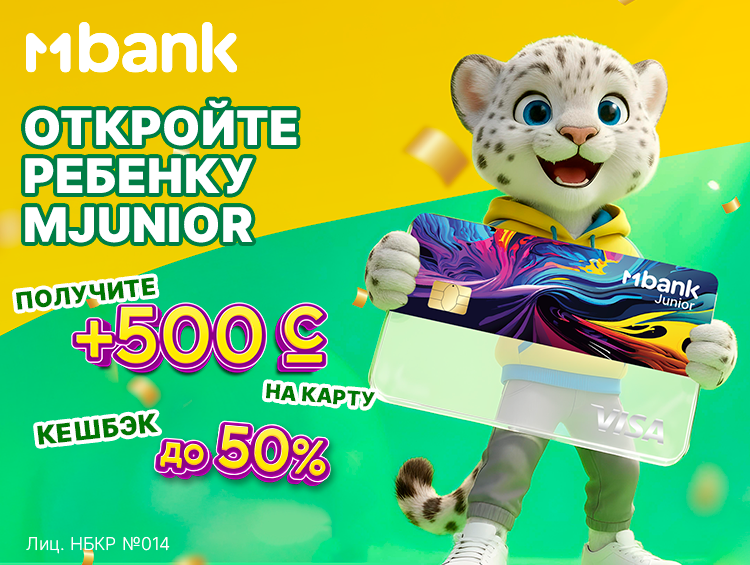 MBANK делает первый шаг вашего ребенка в мир финансов еще более выгодным! Откройте детскую карту MJunior от MBANK, и ваш ребенок получит бонус — целых 500 сомов на карту, а также кешбэк до 50 процентов на покупки!