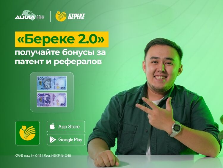 Если вы индивидуальный предприниматель, работающий по патенту, или только планируете его оформить, «Береке 2.0» дарит вам 500 сомов.