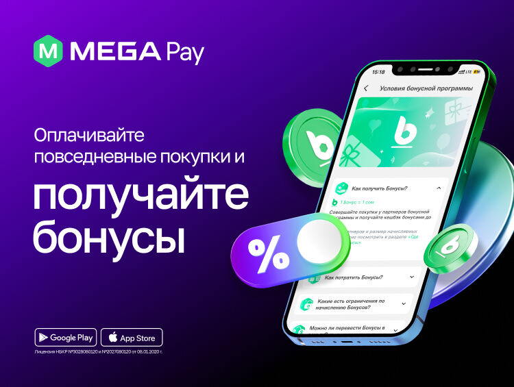 В программе участвуют покупки с баланса номера MEGA, совершенные по сервисам и у партнеров, указанных в разделе «Бонус» приложения MegaPay, и на сайте megapay.kg.