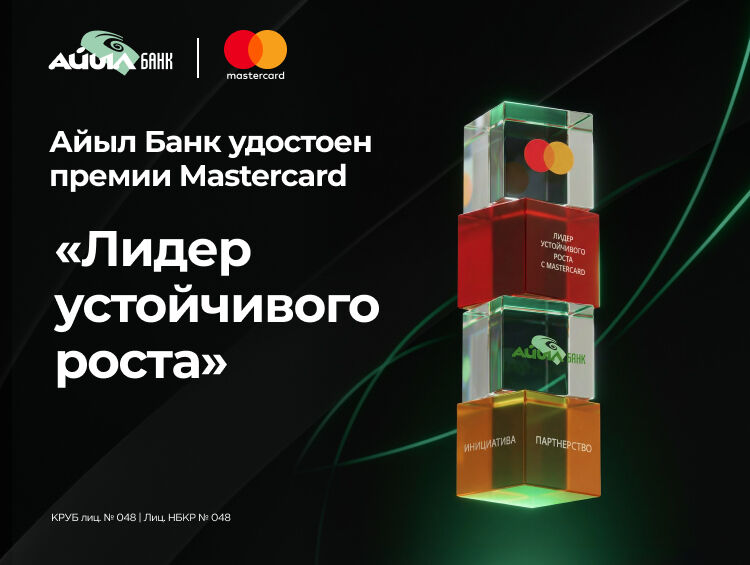 ОАО «Айыл Банк» стало обладателем престижной награды Mastercard «Лидер устойчивого роста», которая присуждается за значимый вклад в развитие финансового сектора, внедрение инноваций и укрепление принципов устойчивого ведения бизнеса.