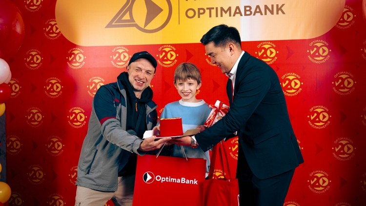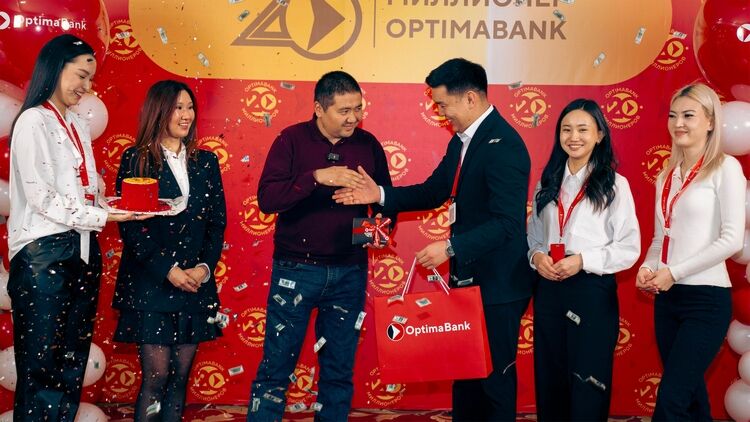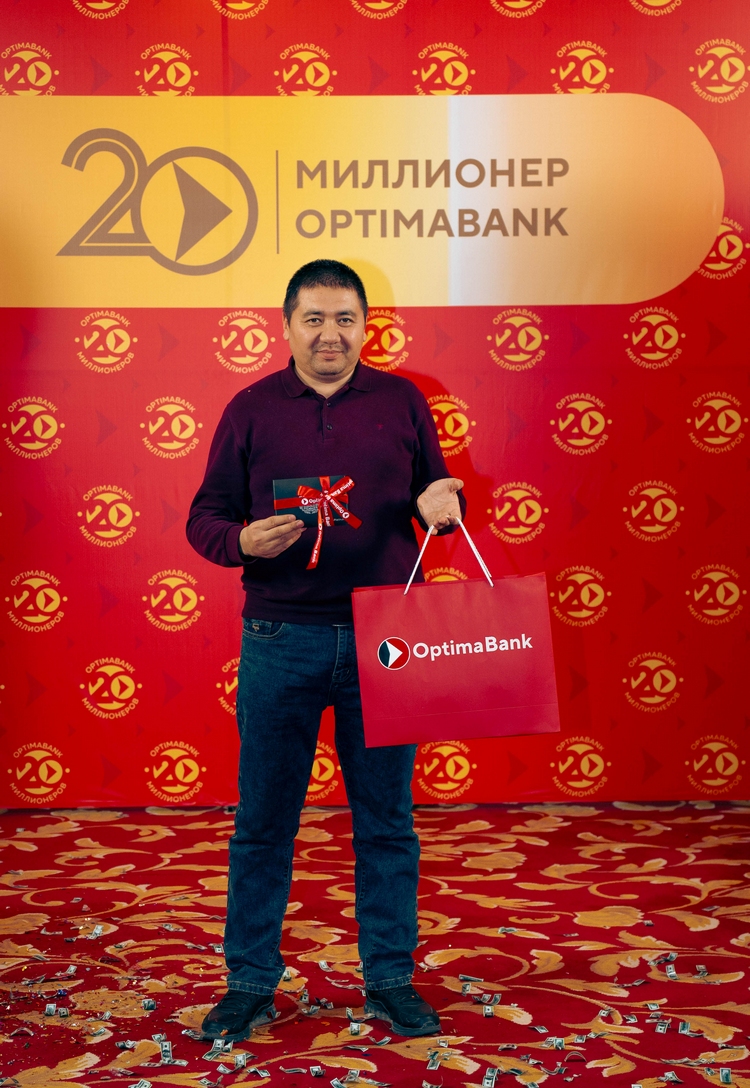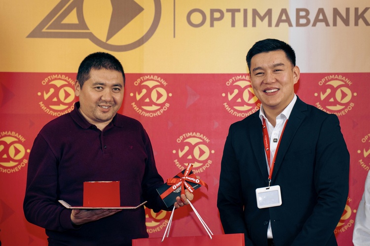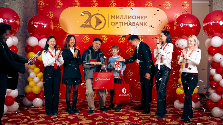 «Оптима Банк» 5 декабря 2025 года наградил первых победителей масштабной акции «20 миллионеров». Клиент банка получил приз — 1 миллион сомов, зачисленных на премиальную подарочную карту Visa Optima Platinum с бесплатным обслуживанием на 5 лет.