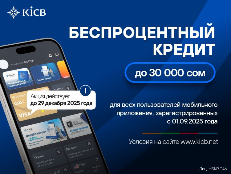 Первый микрокредит до 100 тысяч сомов на 12 месяцев под 15 процентов годовых — предложение, которое действует только до 29 декабря 2025 года.
