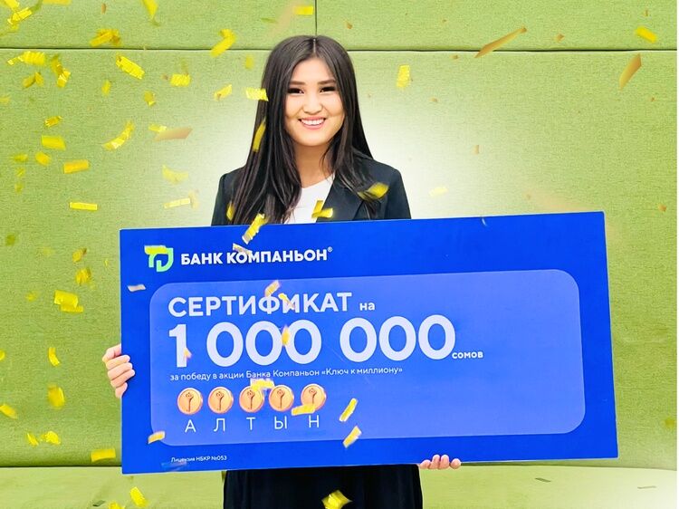 «Банк Компаньон» продолжает радовать клиентов крупными денежными призами. В рамках акции «Ключ к миллиону» золотой сундук с главным призом в 1 миллион сомов открыла пользователь приложения «Компаньон» Жазгүл Асанкуловна Киргилова, став одним из счастливых победителей.